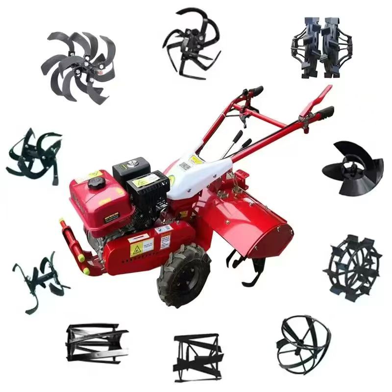 - Acessórios de trabalho: Uma cabeça de leme removível com 4–6 dentes curvos para revirar o solo. Os acessórios opcionais incluem um sulcador para cultivo de hortaliças e uma capinadora para manutenção pós-plantio.