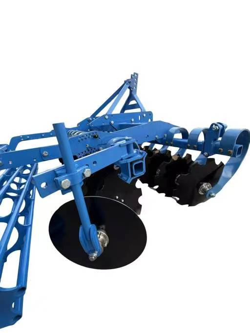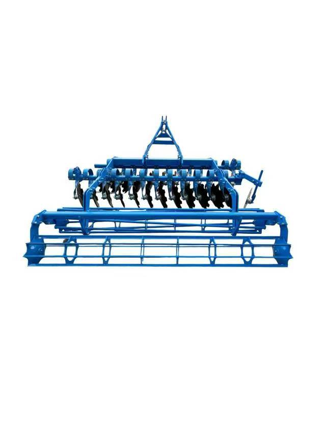 A grade destruidora de restolho para serviço pesado utiliza a força de tração do trator para acionar as lâminas do disco para girar e cortar o solo. Os dentes da mola de lâmina fornecem pressão descendente constante, garantindo uma operação estável de 5 a 15 cm. Durante a operação, os discos dianteiros cortam a palha e o restolho, os discos traseiros pulverizam e misturam ainda mais o solo, e o rolo de prensa compacta simultaneamente a camada superficial do solo, reduzindo a evaporação da umidade.