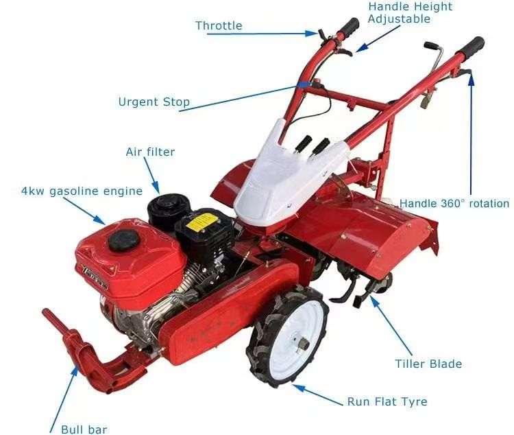 2. Potente e com baixo consumo de combustível: Equipado com um motor elétrico ou a gasolina de 4KW, o microcultivador solta o solo com eficiência, remove ervas daninhas e misturafertilizantes. O seu baixo consumo de combustível/eletricidade reduz os custos, enquanto a profundidade de cultivo ajustável (5–15 cm) se adapta às diferentes necessidades do solo.