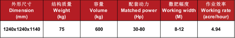 O espalhador de fertilizante plástico suspenso TF-600 possui uma eficiência de trabalho de 4,94 acres por hora, excedendo em muito a velocidade da fertilização manual tradicional. Equipado com uma potência de trator de 30-80 cavalos de potência, ele pode operar continuamente e de forma estável em grandes áreas de terras agrícolas; É o equipamento preferido pelos produtores em grande escala para melhorar a eficiência da produção.
